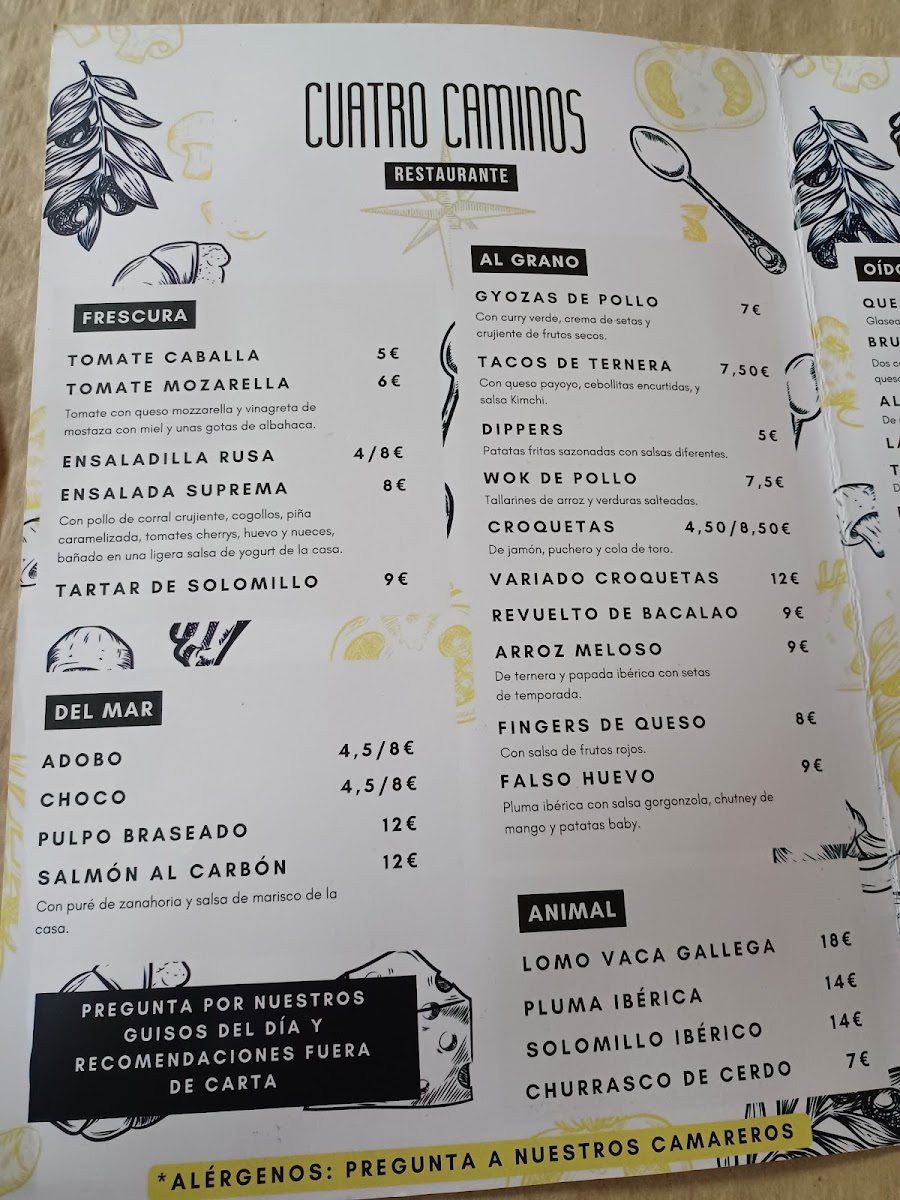 Welcome to Venta Cuatrocaminos, a hidden gem nestled in Villanueva del Ariscal, Sevilla. This unique tapas bar stands out with a creative menu inspired not just by traditional Spanish cuisine but also by diverse global influences. Diners rave about the delightful presentation and exceptional flavors found in every dish. The patatas Dippers with three salsas are a crowd favorite, praised for their innovation and taste.
